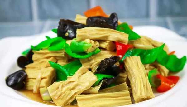 加入食盐2克,鸡粉1克,胡椒粉1克,白糖1克提鲜,加入几滴老抽调色,倒入腐竹,勾入少许水淀粉和芝麻油,快速翻炒几下,慢慢收干汤汁,即可关火起锅装入盘中。