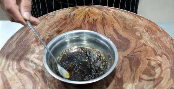 准备一个小盆,加入食盐1克,味精1克,胡椒粉0.5克,白糖10克,加入生抽10克,老抽1克,陈醋15克,再加入少许温开水,用勺子搅拌化开调料。