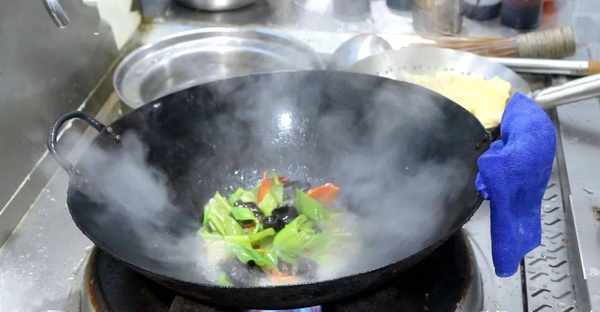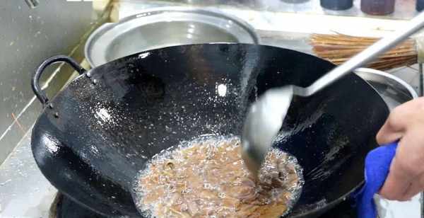 锅内烧水,加入一勺食盐,用来增加食材的底味。