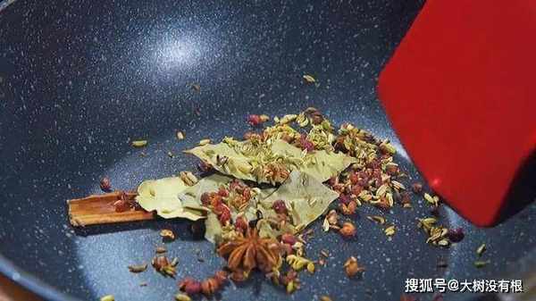5.洗净后的香料全部倒入锅中,开小火翻炒,炒干炒出香味。