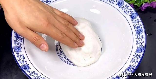 2.碗中依次放2勺糯米粉、适量白糖和温水,上手揉成光滑的面团。