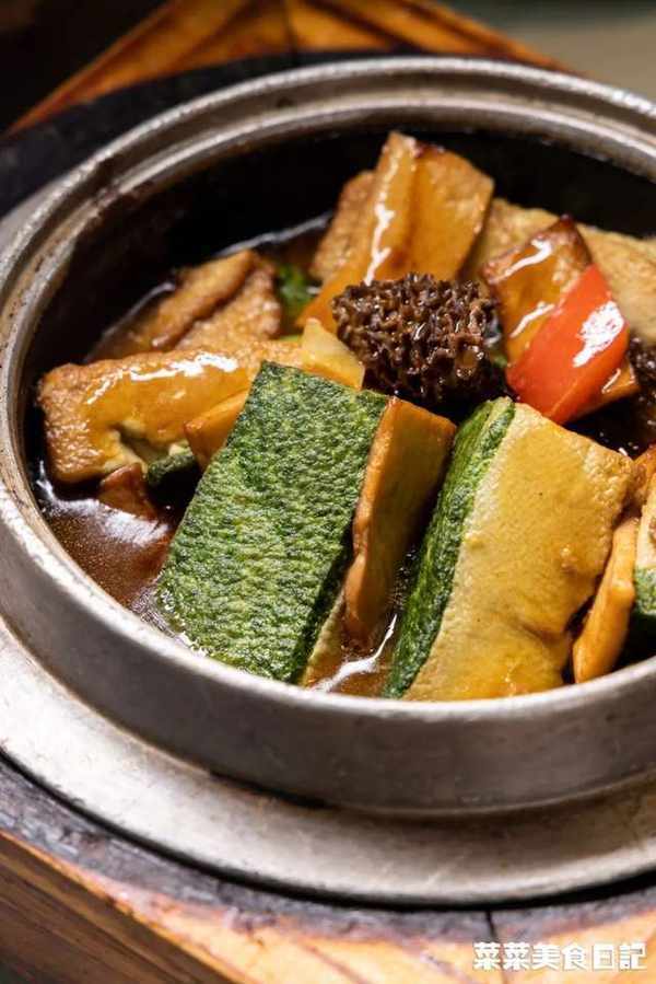 汤汁里菌香饱满,杏鲍菇嚼劲十足,唯一的遗憾是羊肚菌品质一般,香气很弱,是整道菜里的扣分项。