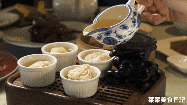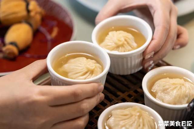口味上也能吃出1+1>2的惊喜,参汤的甘甜将灌汤包浸浴得更加鲜美,还完美地解决了汤包一凉就皮硬馅腥的问题。