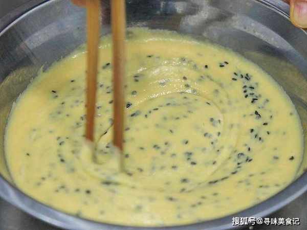 ,用筷子快速把鸡蛋打散,一直打到把白糖化开,加入