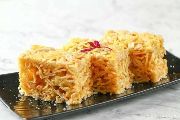 广东人酷爱吃鸡,玉堂春暖餐厅的招牌葵花鸡来自番禺百万葵园,用葵花籽喂养长大的鸡肉感鲜美,皮弹爽脆,没有多余油脂。伊比利亚黑毛猪叉烧由厨师推着餐车在餐位旁现场制作,现烧的玫瑰酒混着叉烧香盈盈绕绕而来。令JIEFEIER印象深刻的还有经典著作榄仁沙琪玛、鲍鱼天鹅酥、兰香铁观音等点心茶水,道道精致又美味。