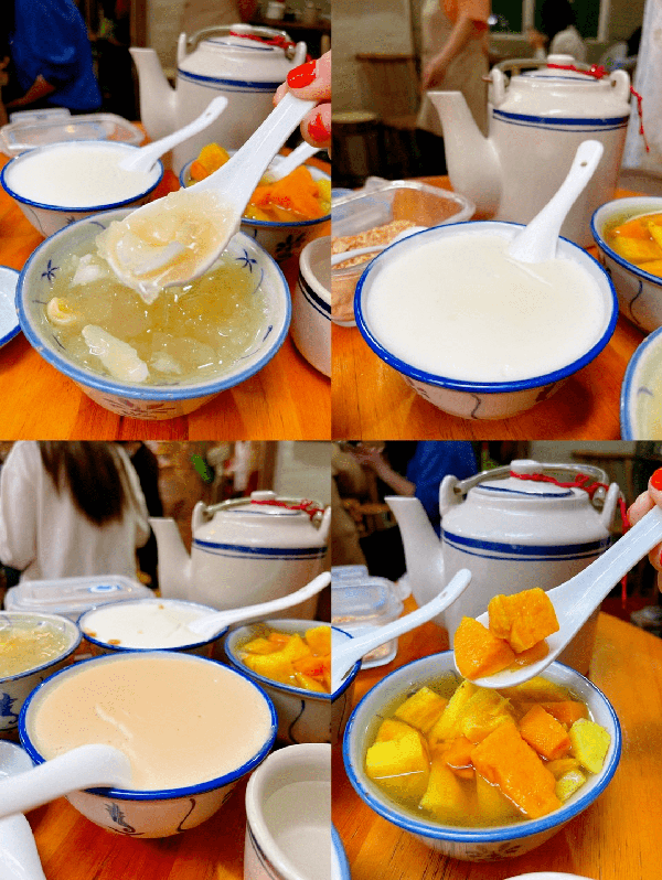 为了品尝老广好味,JIEFEIER还穿越广州20公里来到了番禺市桥,打卡了大名鼎鼎的陈茶馆糖水铺,领略广州传统风貌建筑骑楼里的近百年美食文化。糖水芝麻糊、杏仁糊、花生糊、百合莲子、番薯糖水……坐在这里吃着老字号糖水,品味老底子的慢生活方式……