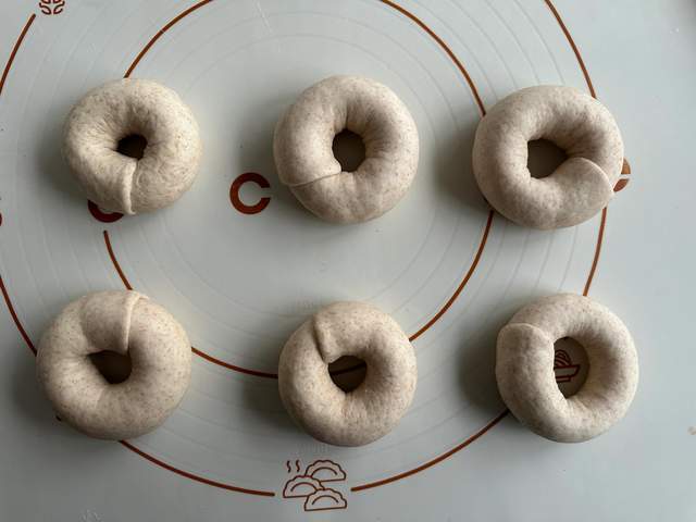 8、刚刚烤好的贝果表面是脆的,组织柔软。冷了以后非常的有嚼劲,麦香十足。一次可以多做一点,密封冷冻保存,吃的时候解冻对半切开,空气炸锅或者平底锅加热一下,你上自己喜欢的酱料,简单凹个造型,摆放上自己喜欢的水果蔬菜肉类,满满的能量。早餐吃还是很方便的;