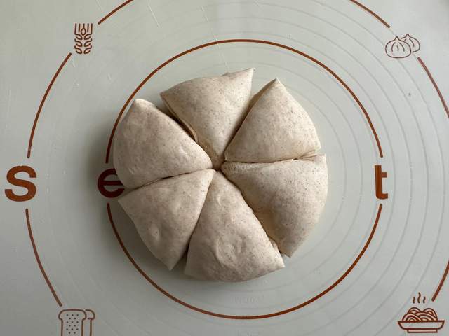 2、整出光面密封醒面30分钟左右,然后取出来分隔成均匀的6等份,再把面团滚圆,密封醒面20分钟左右;