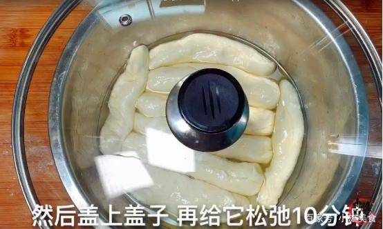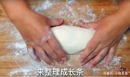 3、面团松弛好以后,需要准备一块案板,在上面撒上一小把干面粉,并用手将面团放在上面进行揉搓。将其揉搓成光滑的面团后,并整理成长条,切成大小均匀的面剂子。然后在案板上再抹上一小层食用油,把准备好的面剂子揉搓成长条备用。同时再准备一个小盆,往里面抹上一层食用油后,把揉好的长面剂子放入其中,再一次盖上盖子,对其进行松弛10分钟。