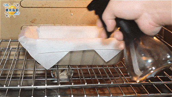 在将模具放进烤箱后,可以再在发酵后的米糊表面喷上一层清水,以防止面包烘烤至表面出现干裂。