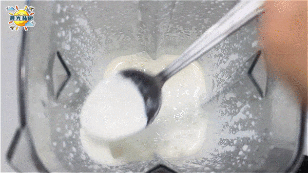 然后就可以将3克速发干酵母倒入米糊中了,然后将料理机的速度调至最低档,将酵母与米糊混合均匀。