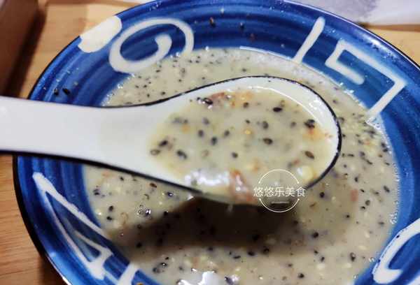 9、豆子加工好后,放入研磨机中,研磨成碎豆。粒度可以根据您的选择。芝麻也放入碾碎点,搅拌均匀后放入盆中待用。