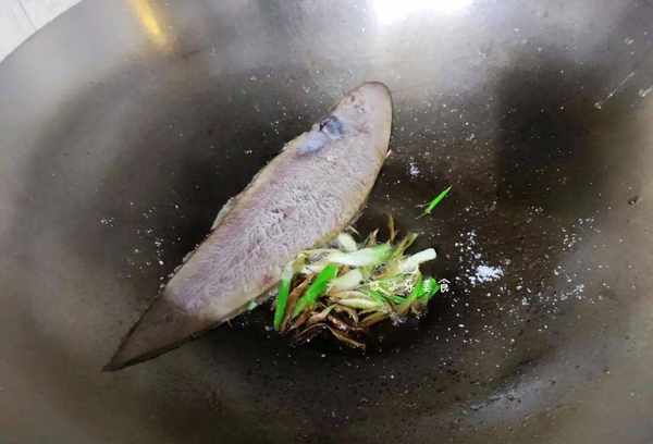 5、鱼肉柔软。翻过来时,鱼皮会裂开,很容易粘在锅上。因此,鱼放入锅中后,不能马上开锅,煎的过程中必须转动锅体,使锅的每一处都受热。这是煎鱼的第二个要点。