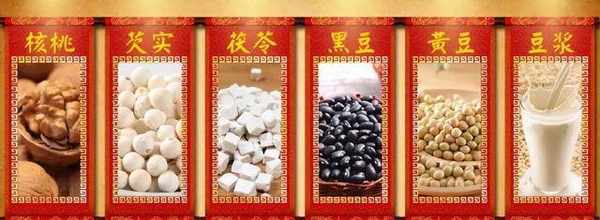 做法:核桃、茯苓、芡实磨成粉,黑豆、黄豆事先浸泡,五种食材一起放到豆浆机里打成豆浆。