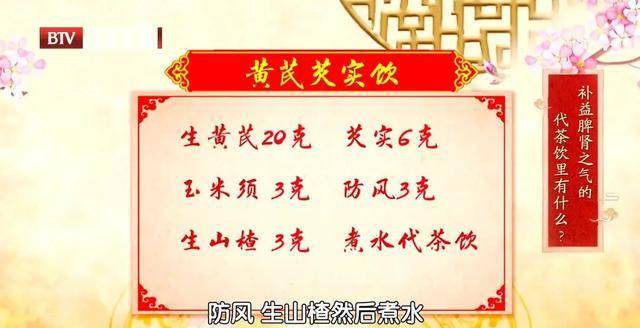 做法:生黄芪20克、芡实6克、玉米须3克、防风3克、生山楂3克,煮水做代茶饮即可。