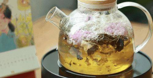 做法:栀子花,蒲公英各1.5g,玫瑰,茯苓,佛手,桔梗,麦芽,紫苏叶各3g。所有食材稍微清洗后放在养生壶里,加清水煮,煮沸关火。