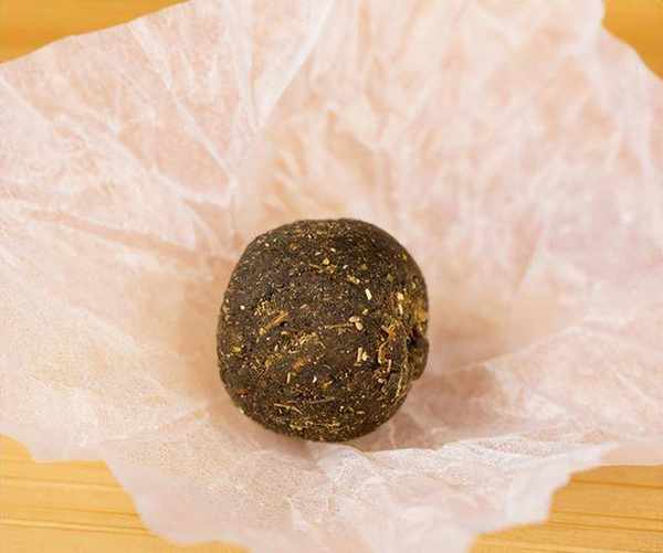 每次将5斤饱满的黑芝麻,用水洗净,放在笼筐上蒸熟,晒干,再蒸一遍,再晒干,这样重复蒸晒九遍后,芝麻皮自然脱落,去掉,将剩下的芝麻仁炒香,将芝麻处理成微粉。再用白蜜调和,做成约10克的蜜球。