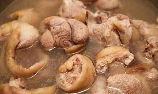 猪蹄和猪皮中含有大量的胶原蛋白质,它在烹调过程中可转化成明胶。明胶具有网状空间结构,它能结合许多水,增强细胞生理代谢,有效地改善机体生理功能和皮肤组织细胞的储水功能,使细胞得到滋润,保持湿润状态,防止皮肤过早褶皱,延缓皮肤的衰老过程。