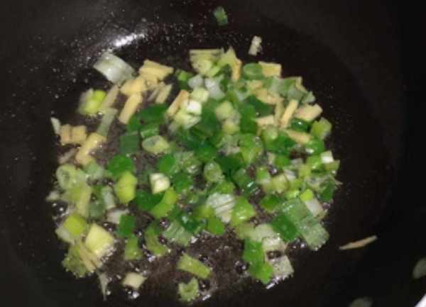 3.热锅倒油,放入葱姜炒出香味。