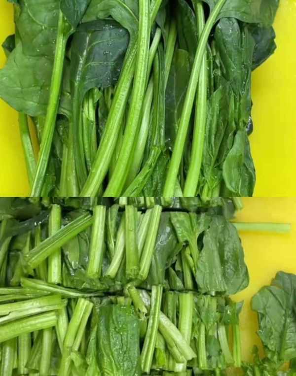 颜色碧绿的白菜很多人都喜欢吃,做法多种多样,今天分享一道不一样的新吃法。首先将菠菜清洗干净改刀切成寸段。