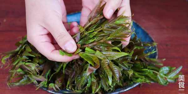 Tips:香椿芽虽然营养价值比较高,但是里面含有较多的硝酸盐和亚硝酸盐,这两种物质在我们体内会形成致癌物质。在滚烫的开水中焯水2分钟左右可以有效的取出2/3的含量。