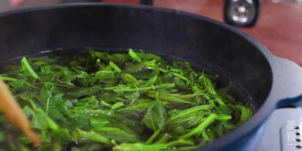 1、把香椿芽择洗干净,放入开水锅里,水再次沸腾之后煮到断生。