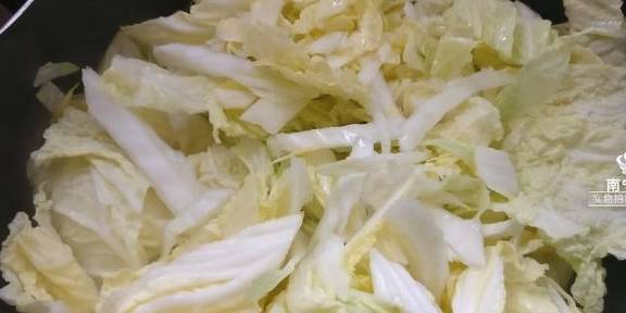 5、接着把大白菜叶也倒进去一起翻炒软