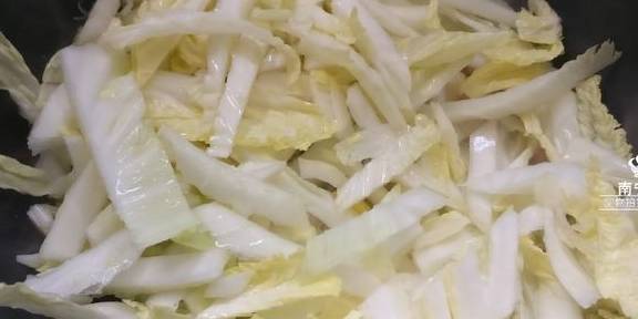 4、先把大白菜菜帮下锅大火翻炒软,因为菜帮相对菜叶难熟嘛,所以先放进去炒