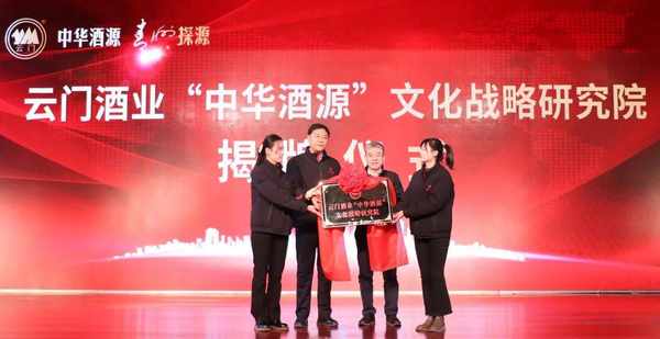 “中华酒源”文化战略研究院揭牌仪式也在会上隆重举行,中国酒业协会名誉理事长王延才和云门酒业集团党委书记、董事长汲英民共同为“中华酒源”文化战略研究院揭牌。