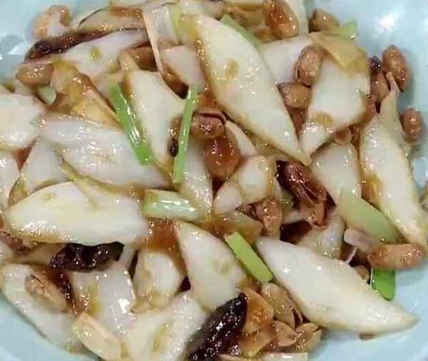 3、炒锅上火,加适量底油,先下入适量花椒炸至变色、将花椒捞出不用;利用锅内花椒油,下入干辣椒节煸炒出香味,至辣椒节变成棕红色时,开大火倒入白菜炒至变色,撒入适量的辣椒面翻炒均匀;先将碗芡里的葱、姜、蒜及青蒜拨入锅内继续翻炒出香味,再将碗里剩余的汁水倒入锅内翻炒至食材均匀包裹上芡汁时,倒入炸好的花生米略加翻炒即可出锅装盘。