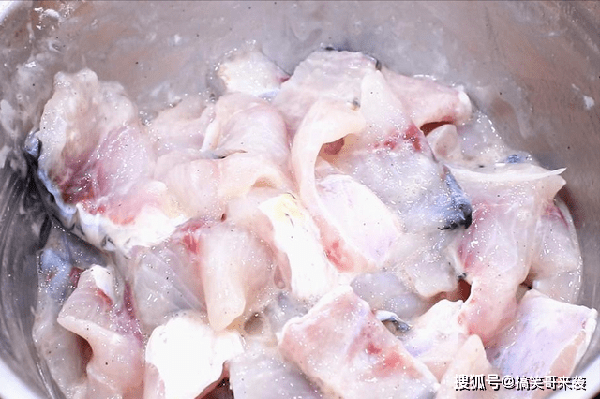 草鱼处理干净,把鱼头切下来、剁成两半,沿着脊骨把两边的鱼肉片下来、剔除鱼刺,把鱼骨斩成段,和鱼头放在一起,鱼肉斜刀片成蝴蝶片半厘米刚刚好,太薄的话容易碎,然后把鱼骨和鱼片都抓洗干净血水,挤干水分腌一下。在鱼肉中加入食盐2克、胡椒粉2克、料酒10克去腥抓拌均匀;打入一个蛋清、增加嫩滑的口感;放入少许淀粉拌匀锁住鱼片中的水分,放一边腌制10分钟。