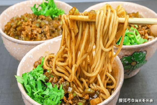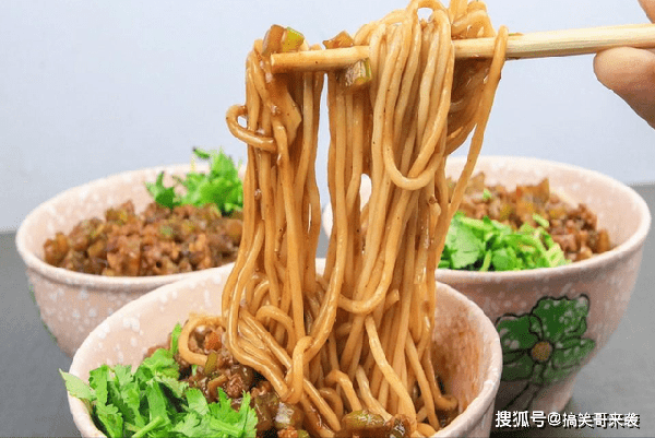 把面条盛入碗中,浇上酱汁、撒上香菜葱花,拌匀后即可享用,简单又美味,轻松解决全家晌午饭。