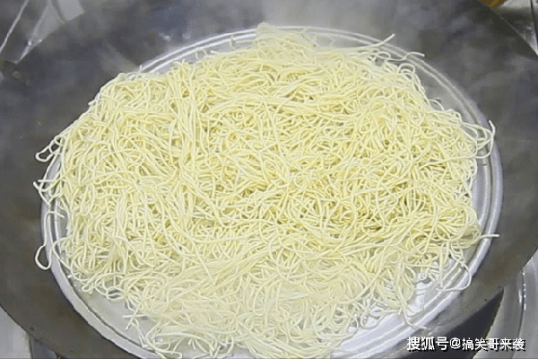 把面条拽断放盆里,淋上点油抄匀,这样蒸出来不粘,吃着还滋润。开大火烧水,把篦子里刷上油放上面条,水开以后计时蒸8分钟。