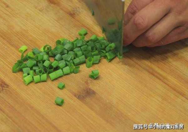 小葱切成小葱花。