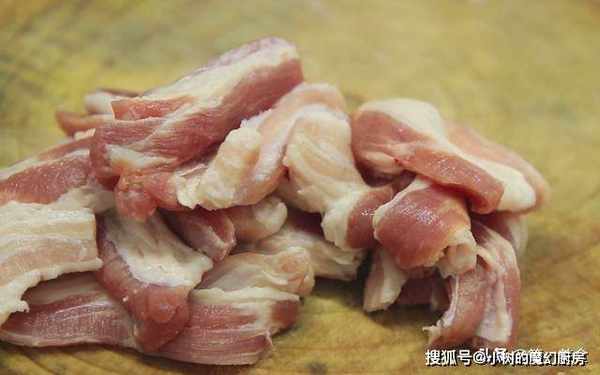 五花肉一块先去皮 ,然后把五花肉片成薄片。