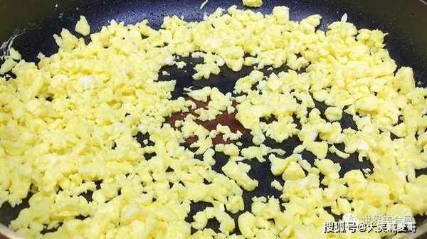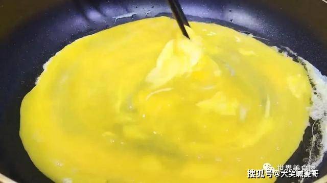 3、鸡蛋倒在锅中,用小火,筷子不断搅拌。