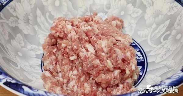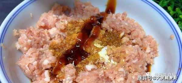 2、接着剁碎肉末,倒入葱蒜姜汁水,这一步非常重要,可以去腥增鲜。