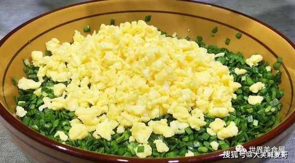 6、上面就是搅拌好的韭菜鸡蛋馅饺子,不需要添加太多调料,吃起来很鲜美。