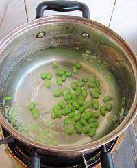 青豆煮的时候可加一些盐,煮出来的青豆颜色更加碧绿,而且煮过的青豆也可缩短炒制的时间。