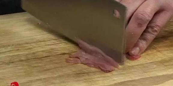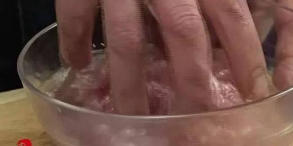 1猪肉切成细丝,放入乘清水的碗中,洗去血水,挤干水分