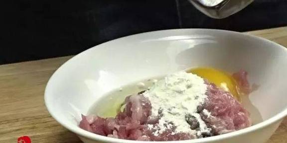 3打入一个鸡蛋,加入两勺淀粉,抓捏均匀,腌制8分钟让调料入味