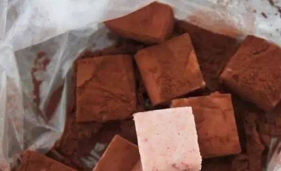 ⑥将无糖可可粉放入塑料袋内,再放入步骤5,使表面均匀沾裹上一层无糖可可粉即可。