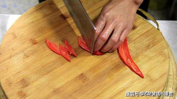 红椒半个,切成红椒片。