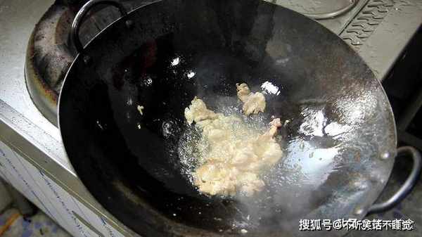 现在,我们开始烹饪。锅内烧油,热油充分滑锅以后倒出,倒入凉油。热锅凉油炒菜时不容易粘锅。倒入肉片,翻动肉片,免得粘连。