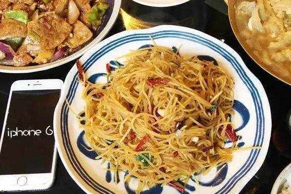用料很实惠,无论是土豆丝还是其他的辅料。盘子也够大,iphone6在它面前根本不值一提。