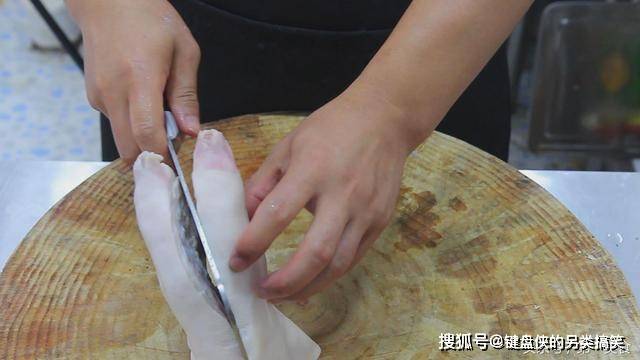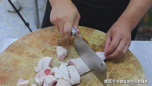 再用砍刀剁成小块,在家做尽量把块剁小一点,这样比较好熟。