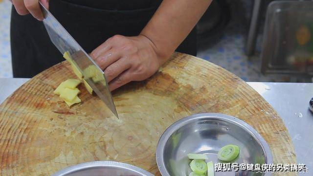 大葱半根,切成马蹄片,生姜切成菱形片,都放在一起。