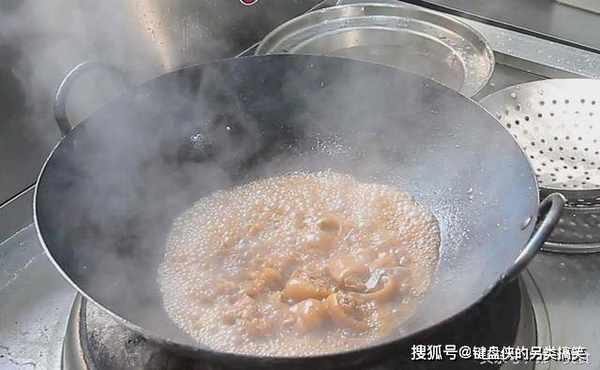 炒出香味以后,倒入猪蹄翻炒几下后,加入清水,清水的量要没过猪蹄。