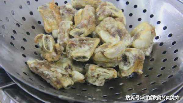炸好以后,把排骨捞出控干油。