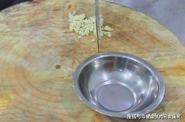 准备大蒜一把,拍扁切成蒜末。